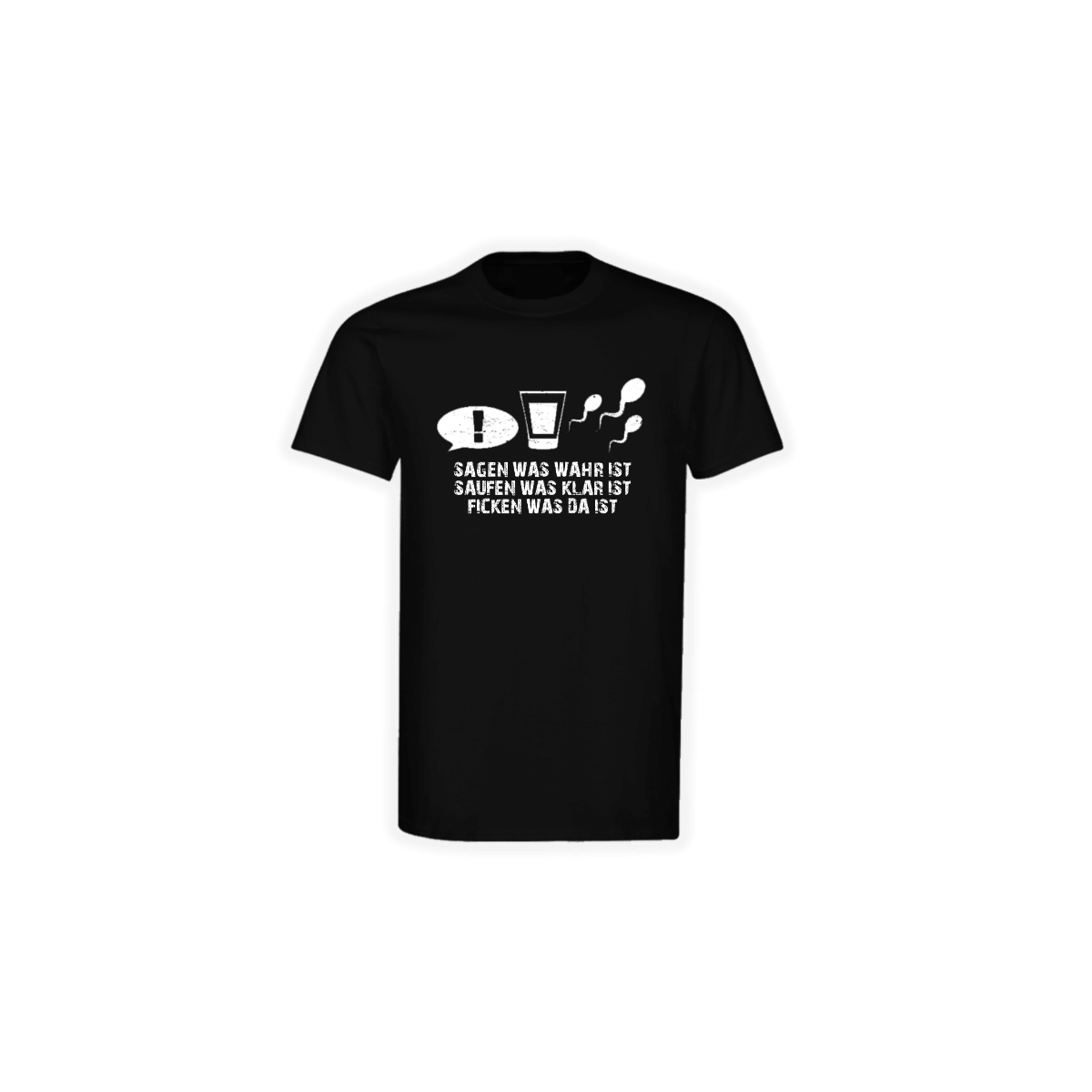 Vorderseite bedruckt mit dem Logo "SAGEN WAS WAHR IST, SAUFEN WAS KLAR IST, FICKEN WAS DA IST".