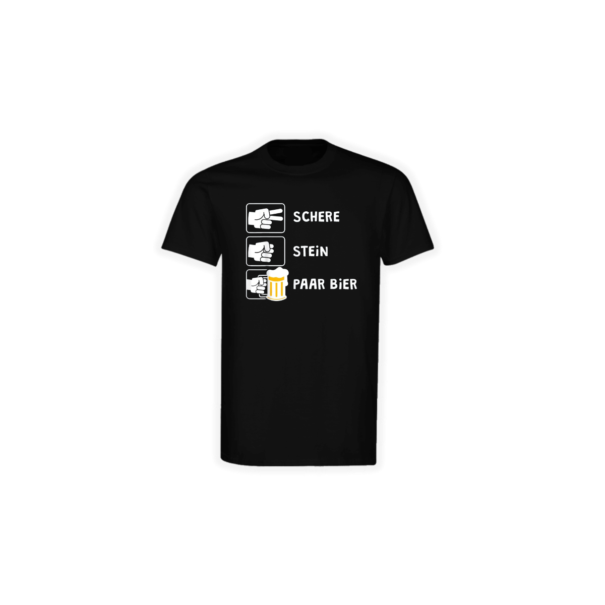 Vorderseite bedruckt mit dem Logo "SCHERE, STEIN, PAAR BIER".